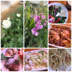 今日はオフ会でスイートピーの見学やミニマルシェを楽しんだ後にイタリアンレストラン『ロカーレ』さんでランチ🍴💕 美味しいお野菜たっぷりのバーニャカウダ、パスタはちょっと麦わら帽子に似た形の物(オリキエッテ)もいただきました👒お味も量も大満足❤ デザート食べながらの抽選会も楽しかったです❗