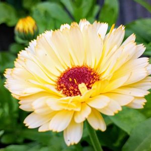 金盞花スノープリンセス🌼 庭花 今日の陽射しのようにキラキラ✨✨ 咲きました〜♪♪♡♡(≧∇≦)蕊の色の違いも味が有ります😘