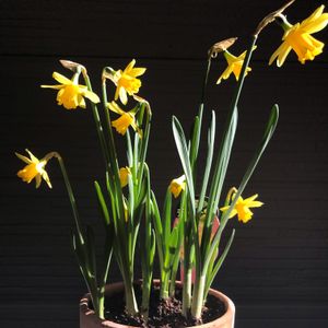 一年越しにお迎えしたミニ水仙💛 昨年、秋田で見つけ、こんな小さいのも ある事がわかり、欲しくて、欲しくて 一昨日、お迎え✨鉢がこれしか無くて ちょっと窮屈だね😅もうちょっと 大きいのに、お引越しさせたねあげるから 待っててね〜〜💛