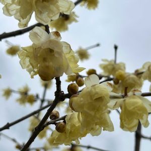 今日のロウバイ🏵️ どんよりとした曇り空がバックだと元気がないように見えます😢 でも実際はいまが盛りです☺️