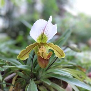パフィオペディラム お気に入りの園芸店の福袋に入っていました。初めてお目にかかりましたが、毎日ウットリしています💛🤍🪴外は寒いけれど、室内で明るい雰囲気味わえるので、ルンルン🎶