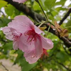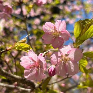 🌸*・。. もうすっかり葉の緑が目立っていた 車で通りすがりに見かけた河津桜🌸 どこか古風な桜色.. 🩷 満開の頃のpicをもう少しだけ添えます 🌸もう桜も咲いているだろう 河津桜に続く桜並木.・。・🌸 見に行きたいな. . . 🌸 (゚∀゚)