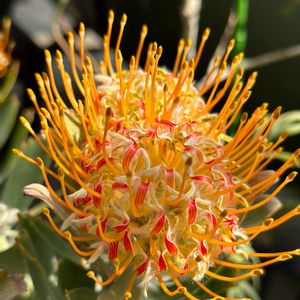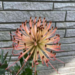 リューコスペルマム「スカーレット・リボン」 四国ガーデンさんでGETしました。 リューコスペルマム「スカーレット・リボン」 5号ロングスリット鉢 Leucospermum 'Scarlett Ribbon' hybrid(glabrum×tottum) サーモンピンクの花房に可愛い真っ赤なリボンがたくさんついた様な花を咲かせる。 幅広い土壌に適応し、育てやすい品種である。 耐寒性:-4℃ 最大樹高:150cm 最大株幅:180cm 【日照】日陰 【水やり】普通 【ヤマモガシ科】 【花期】3-6月 日照、日陰なんだけど、日陰で育てるのかしら🤔 まだ植え替えずにこのままにしてますが、早いこと鉢増しするか地植えしないと💦 場所悩んでます。