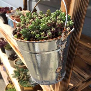 ブリキ缶に植えた子持ち蓮華 勝手にワサワサ増えるお利口さん😍