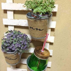 シャビーシックなブリキのハンギング☆ ユーフォルビア ハツユキソウ/ 薄紫ペンタス ほどよく伸びたシュガーバインを単体鉢から移して寄せ合わせました☆