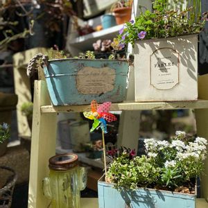 おはようございます☀ 今日もいい天気☺️🤧 可愛げなプランターには 弱った多肉さんを💐 日差しのお陰で元気そうに映ってる✨