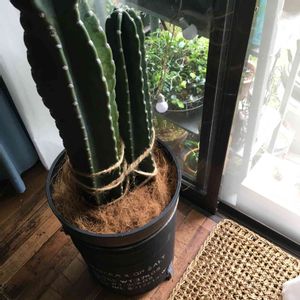 実は1ヶ月前に根腐れした柱サボテンさん… 3本のうち、結局短い2本ダメにしてしまったので、どちらも変色したところをカットして2週間ほど切り口を乾かし、また植え替えしました! 半分くらいの長さになってしまったけど、グラグラするので、唯一無事だった1番長い子と一緒に紐をまきつけて軽く固定しました。 このまま根付いて復活して欲しい‼️ ᕦ(ò_óˇ)ᕤ