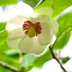 *大山蓮華 (オオヤマレンゲ) 奈良県大峰山に自生し ている…と知り、奈良 派の私は3年前に苗木 を購入。そして… 初めての花が咲いた。 花の寿命は4〜5日? 雨と低温のせいか、 3日目には茶色になり 萎んでしまった。 早目に生け花にした 方が良かったかな💦 モクレン科独特の 赤い実を見たくて 切らないでおいたの だが、蕾はあと3つ。 まだ、 望みは萎まない🤍🧡
