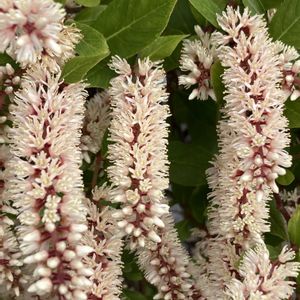 ブラシ状の花序で、ほのかに甘い香りがある小さな白い花をたくさん咲かせます。また、紅葉を観賞するため各地の庭園に植栽されたとのこと。 「コバノズイナ」