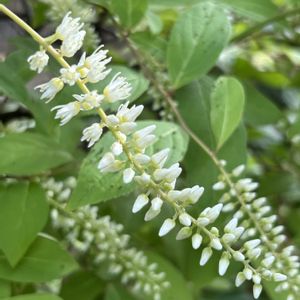 コバノズイナの花言葉∶「あふれる思い」「リラックス」「純粋」「少しの欲望」 別名∶ヒメリョウブ ズイナ科ズイナ属🌿落葉低木 ズイナとの違い∶コバノズイナの葉は細長く3〜7cm、縁はギザギザしてない。ズイナの葉は5〜12cmで卵型で縁がギザギザしている。 ズイナの若葉は食用とされるが、コバノズイナは食べられない。