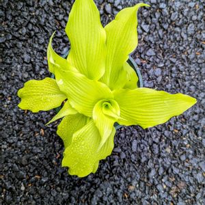 長野庭便り𓂃𓈒𓏸︎︎︎︎💌 ホスタ祭り𓂃🌱𓈒𓏸(44) 「ダンシングクィーン」中大型種 波打つ葉で芽吹きから美しい黄金葉でとても美しいホスタです。┅が、我が家では気難しいホスタでもあります💦 最初、地植えで育てておりましたがそこそこ育ったかと思ったら次は株が小さくなり始めたので慌てて鉢上げした時のや翌年あたりの時の姿となります。 資料を見ると中大型種とありますが┅育つ環境を選ぶホスタなのかなぁ💦と思っております。トータル8年程育てていますが💧未だに5号鉢であります。 何方か大きく生育した方居ませんか❓ 我が家では地植えは育たない様なのでこのまま鉢管理で気長に育ててゆきたいと思います。 でも、大きくはならないのですが~とても美しいホスタであります。