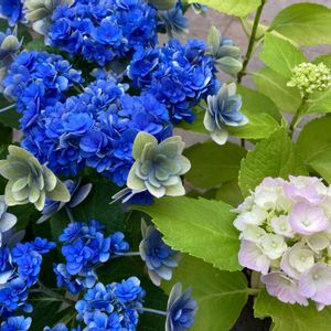 『赤色紫陽花の土』で栽培していた【黄金葉】ですが、開花した花をよく見ると少しブルーがかっています。 今度の植え替えは『青色紫陽花の土』を使ってみます。