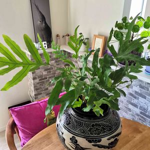 GSで旦那さんからホワイトデーにもらったグリーンが好みでなく 翌日返却して違う子を連れ帰ってきた🌿 …という話を聞いたよと言ったら 「お返し何がいい?(((;゚Д゚)))ガクブル」 と今年貰った ポリポジウム・ブルースターです♡ 優しい♡♡ ブルーがかった羽のように広がる葉が とても美しい子です〜🌿✨