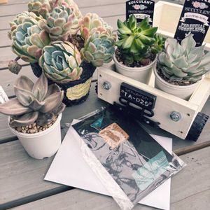 おはようございます☔️ GW最終日…雨です でも、でもアタシの心は☀️✨️です♥️ ありがたいことに立て続けに🎁が届いて早起きして多肉事です♪̊̈♪̆̈ ☝🏻ふうさんからの🎁 群生株、ヤバしです!アガベシャークスキンさんも頂いたんですが、すぐに地植えしちゃったので、晴れた日に📷✨しまーす( *´꒳`*)✌🏻 トラックプランター、何植えようかワクワクしちゃいます(*´艸`)︎💕︎︎💕︎ ふうさんありがとう♥️ ✌️銀時さんからの🎁 欲しかった熊童子錦さん🧸♥️覚えててくれたんですね❣️ありがとうございます😭そして、銀時さん作の🐥⸒⸒ちゃん、ピンセット(チョコジの名前入りです♥)、ウッドプランター。このピンセット使ったら上手にチマ寄せできる気がする ✨(▭-▭)✧👍🏻︎🩷 ̖́- 銀時さんありがとうございます♥️ では、皆様もGW最終日ゆっくりお過ごしください🍀