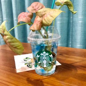 シンゴニウムのstarbucksCafe😊 娘の飲み残しのカップを洗って捨てるか迷って😄 なかなか可愛い😍 今日は休みで裏の通路の砂利の購入やらなんやらじっと出来ない😁 汗だくでした😨 喉乾いてうっかり飲みそうになりました🤣