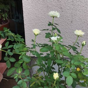 どんどん咲くので、 リビングに面したデッキから移動。 通りからも見える玄関脇に置いてみた。