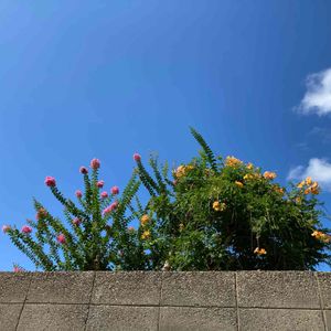 ピンク💖のサルスベリとオレンジの🧡花😊 夏〜な景色だけどもぅ秋の風☺️🌿🌿