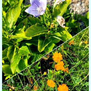 お盆ですね🙏 お墓参りの時に咲いてました✨ ↑キキョウ💜 ↓キバナコスモス💛