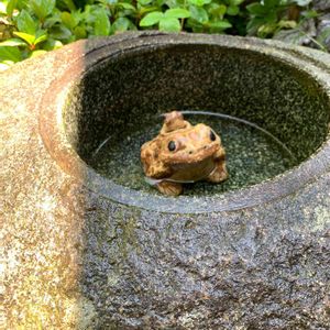 洗ってあげた 綺麗になって気持ち良さげ🐸