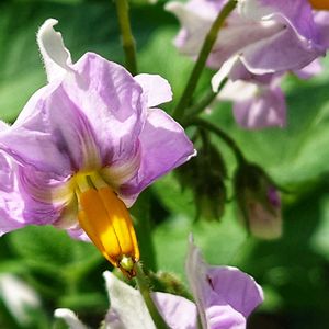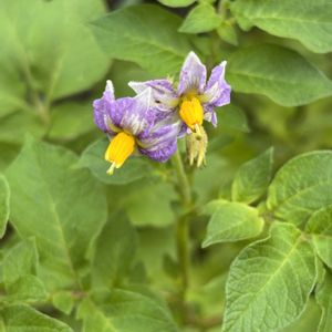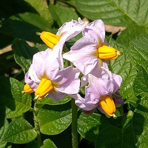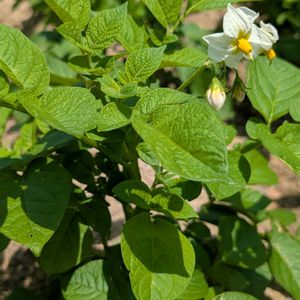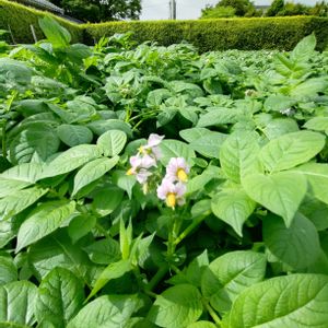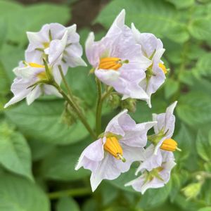 ジャガイモの花 花が咲き終わり、しばらくしてからジャガイモの収穫です。 たくさん収穫できますように🙏