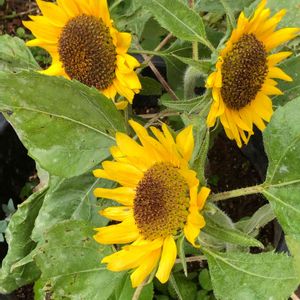 種を貰い間もなくの7月末に撒いて、2ヶ月もかからず咲き出したミニひまわり💛が満開です。 5個の種から3本開花、背丈は30cmやっとです! もっとのんびり咲いてくれても良かったのに~( *¯ ꒳¯*)🌻🌻🌻 先日は災難!! 日当たり良いとこにと思い、ポストの前に置いたら、車でドカン😖 下の方で横に割れちゃいました💦 乱暴者がー💢 💢 弁償する気も無い我が家の男どもに、鉢が災難続きです( ඉ́ ̫ ඉ̀ )