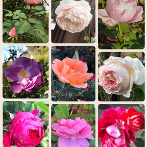 急に寒くなり、天気も悪いけど、バラは大きめ✌️深みのある色になってきましたよ💗🎶💗🎶 さぁ、頭の体操の時間デス💧💧╮(´•ω•)╭ ↖️ロイヤルサンセット ⬆️ディスタントドラムスの横顔 ↗️フィネス ⬅️ダフネ ⏺バスシーバ ➡️カインダーブルーだったかな?! ↙️今日、3日目のエリナ ⬇️遮光ネットに壁ドンで咲いてる、ラローズドゥモリナール💦 ↘️アプリコットドリフトが可愛い(๑♡∀♡๑)