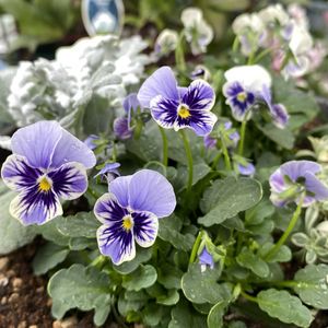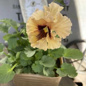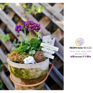 ①ビオラ“レディ“ ようやく出会えました(*´˘`*)♡ 見つけた瞬間、きゃーっ♡心の中で叫びました‼️ 3株しか残っていなかったのですが 迷って、悩んで…この子に決めました✨ 以前は普通に購入出来ていたレディ。 ここ数年、購入制限や整理券配布などがある人気品種となり、なかなか出会えず๛(๑•́ו̀๑) GSの投稿を見返していたら4年ぶりの再会ですって ②カゴに🧺寄せ植え どうしてもカゴ寄せしたかった♡ でも何と一緒に寄せようかな〜 小さめのカゴだし〜 そこで困った時のアリッサム‼️ PWのスーパーアリッサムフロスティナイトと一緒に植えました♪ 斑入りの葉が最高にウツクシイ ③頂いた花束💐 (੭*ˊᵕˋ)੭ᵗʱᵃᵑᵏᵧₒᵤ❥ surya’s Pansy &Viola no6.ビオラ レディ/石川園芸さん