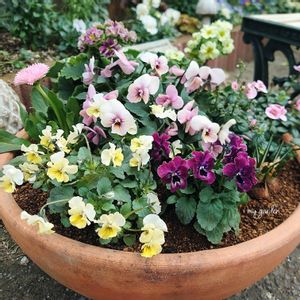 今日は春を感じさせる天気で母と2人色んな作業をしました❁ 母はお水やり、私はもくもくと寄せ植えを!各自作業をしながらも、このこ可愛いよね〜やっと咲いたね〜が止まりませんでした☻