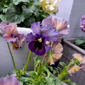 石川園芸さん ビオラ レディ 購入時にはブラウンがかったピンクのような花色 咲き始めはどうかしら…と思っていたら、濃いブルー→パープル→ブラウンがかったピンクの変化でした ひと苗でも華のあるにぎやかさ✨️ あの色がいいな、この色がいいな、なんてお迎えする時は悩ましいのですが、どんな君も素敵さ♪というのが結論です👍