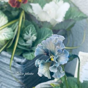 週末お迎えしたレディのおかわり続編。 この日は濃いブルーが人気で、 私もしっかりセレクトしました。 咲き始めはブルーなのですが、 咲き進むとpic2のように色変。 こちらは同じ株の花です。 花色を中心に寄せ植えしようとすると、 どっち基準にするか悩ましい…