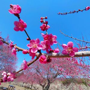 2枚目投稿です。先程の紅梅のアップです✨。青空にあまりにも綺麗に咲いてましたので、見て下さいね😊。 今年の春🌸は、早くきそうだ!とTVで言ってました🎶🌸🌸🌸春が待ち遠しいですね🌸