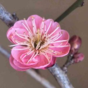 おはようございます😊✨。 JAなのはな(直販)で見つけた 一束200円の紅梅💖。 蕾だけだった枝に ぽっと一輪🌺 可愛い花が咲きました(^-^)💕。 今日も素敵な1日に なりますように✨✨✨✨。