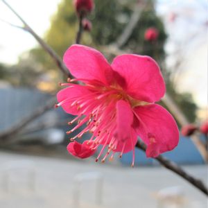 お出かけしました🚶♂️いつも通っていた道 青空に誘われて上を見ましたいつのまに 紅梅が満開になっていましたとても綺麗でした