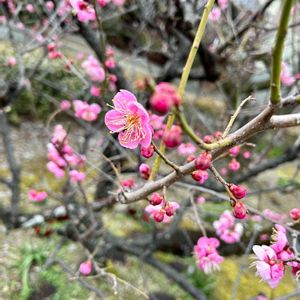 ウメ「紅千鳥」がかなり咲いてきました。 蕾がまだまだたくさんあるので、引き続き楽しめます。 根元に近い方から咲き始めて、枝の先の方へと、段々と時差で開花していくようです。