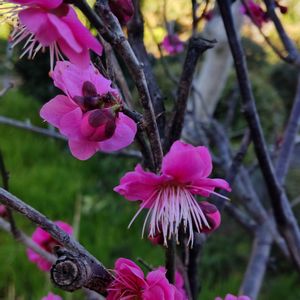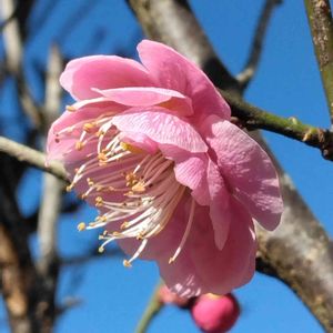 ウメ「紅千鳥」も数輪咲き始めました。 品種名は、亡き父が言っていたもので、記憶が確かなら、「紅千鳥」です。