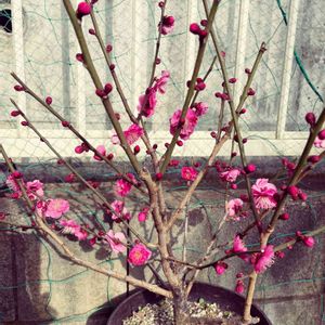 紅梅💕 盆栽の紅梅が咲きました\(*ˊᗜˋ*)/💕とっても可愛いです😊🌱✨今日も暖かくなりそうなので開花が進みそうです(⁎˃ᴗ˂⁎)💕