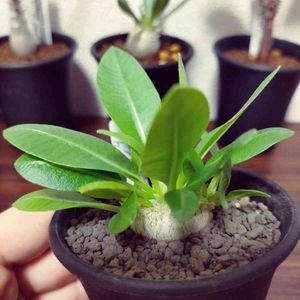 アデニウムの葉っぱがめっちゃしげってきた! 毎日くらいお水💧あげていこうかなぁ~。葉っぱをいっぱい出して栄養つくって太らせたいので、昨日メネデールあげました! 大きくな〜れ🌱