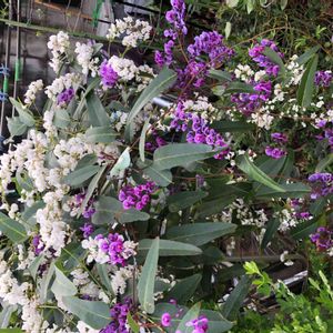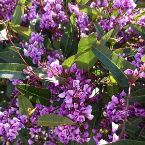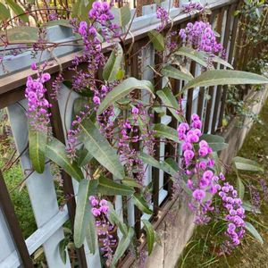 朝の通勤途中。「ハーデンベルギア」が綺麗に咲いていました。パチリ・パチリ 「ハーデンベルギア」の開花期は3月~5月ですが、市販は12月~4月とのことです。