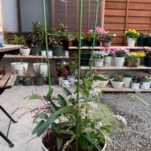ハーデンベルギア。 初めて育てるのですが、胡蝶蘭のような小花が可愛らしい常緑のオージープランツみたいですね。 ツル性なので、行灯仕立てでもしゃもしゃに絡ませてみようと思います^ ^