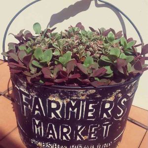 メルカリの売上金で購入したセダムさん達とnico and…で見つけたブリキバケツ🌱 うちの一番新しい子🌈 やぁっと🌞が出たから📸撮れました~☺️