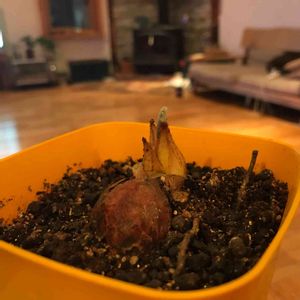 妻が昨年春に持ち帰ったソテツの種。 やっと葉が出て来そう! やぁ長かった(・・;)