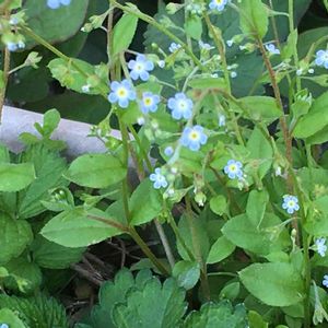 庭の草抜き 雑草~胡瓜草~ 忘れな草によく似た雑草です。葉っぱが胡瓜の匂いに似てるのでこの名前なんですって。庭の畑にいっぱい咲いてて😅