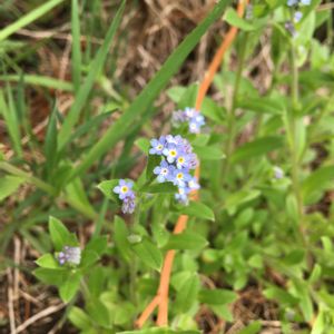 土手にキュウリグサが咲いているのを発見しました。