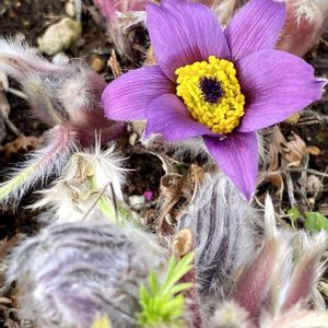 セイヨウオキナグサ (西洋翁草) 翁草の 西洋種だよ~ 🥰 我が家🏡で、日本の翁草と 一緒に 咲いてます 💕 黄色と 紫色💜・・・ あと 青色も あるのだが・・・💦 😥 🏷木曜モフモフ 🏷愛しの紫💜