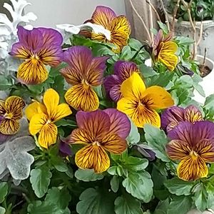 ここ1週間程で花数が増えてきた挿し芽のビオラたち💐 タイガーアイ、ラヴィオラ、うみももか✨