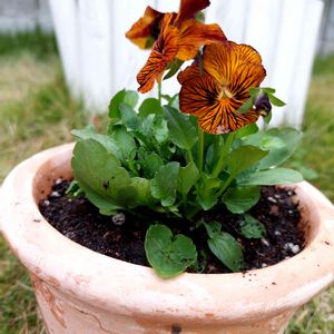 🎶 ビオラ タイガーアイ ♬ 昨日は暖房なして過ごせたのに、今日は寒ーい日になりました。 寄せ植えにしてあったタイガーアイを種から育てたデイジーと寄せ植えしました。 まだ、デイジーは苗なので、ちゃんと咲くかはわかりませんが…😅