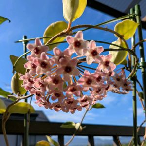 お早う御座います〜☀ 梅雨の中休みですね 青空に映える…ホヤ.サクララン2種類です👏🥰🎶🎉🎊 二階テラスの戸を開けると… あま〜い香りが漂っているわ‼️ ホヤ.サクラランが沢山満開に〜🈵見事じゃ✌️😃💫 長期間楽しませて貰っているのよ〜嬉しいなぁー🎶🎉⤴️ 癒されてね〜🙋💞