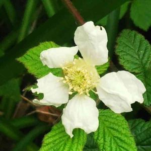 あ~🎵咲いてる🎵 この子は倉庫の横に咲いてた野いちごの花🌼 ん( -_・)?なんか変❗️ 花ピラが誰かに食べられてる~💦 いったい誰の仕業‼️ また、赤い可愛い実になってね🎵( v^-゜)♪