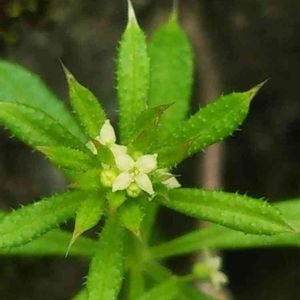 あれっ❔💕 ヤエムグラ🎵 百人一首に出てくるヤエムグラ🎵 八重葎 繁れる里の寂しきに 人こそ見えね 秋は来にけり 残念ながら、百人一首の八重葎とは季節が違うのでこれではないのではとのこと❗️ 八重葎には雑草という意味もあるそうです🎵 ん( -_・)?なんか白いものが⁉️👀‼️って、スマホのカメラでズームしてみるとやっぱり花がついていました🎵 ヤエムグラという名前も花が咲くことも、つい先日GS.のユーザーさんから教えてもらっていたのですが、今日出会えたのは嬉しいサプライズ😆⤴️💓 2mmくらいの小さな小さな花ですが、一人前に蕊がツンツン🎵 この花が丸い緑の実になるのです🎵 葉っぱにトゲトゲがあるのわかるでしょうか❔ 茎にもトゲトゲが沢山あるので、それで服にくっつくのだそうです🎵丸い実もね🎵 だんだんに葉っぱが付いてる所謂、ひっつき虫と呼んでいた植物の名前と花が咲くこともわかったことで、ただの雑草が、親しみを持ってみられるようになるのですね🎵(*^-^*)