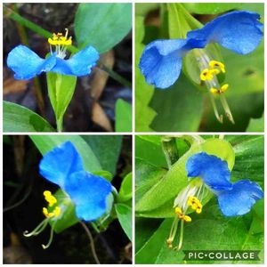 左上:真上から撮影 昨日の朝のツユクサ🎵 蕊が、う、う~ん❗️って、ちっちゃな腕を伸ばして伸びをしている風に見えませんか❔💕 可愛い💕 左下:昨日の朝の別のツユクサ🎵 右の上下:今朝のツユクサ🎵 蕊がなんとも言えず魅力的💕 彼岸花が目立つ中、庭の片隅の階段のすぐ横にひっそりと咲いてるツユクサ🎵 今年は、ここに居るよって、良く声かけてくれる気がする🎵 ( -_・)?、ところでツユクサって、夏じゃなかったっけ❔💕 明日は早出🎵 もう寝ます😅💦 明日が良い日でありますように🛐